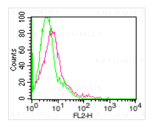 Figure 1: FLOW analysis of Balb C mouse splenocytes stimulated with LPS (3 days) stained with purified CD80 (clone 16-10A1, red) or Armenian hamster IgG isotype control (green), followed by goat anti-Armenian hamster IgG PE.