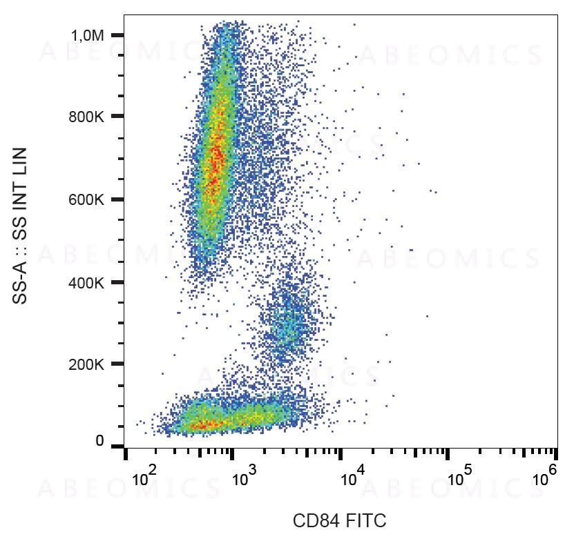 Figure 1: Surface staining of CD84 in human peripheral blood with anti-CD84 (CD84.1.21) FITC.