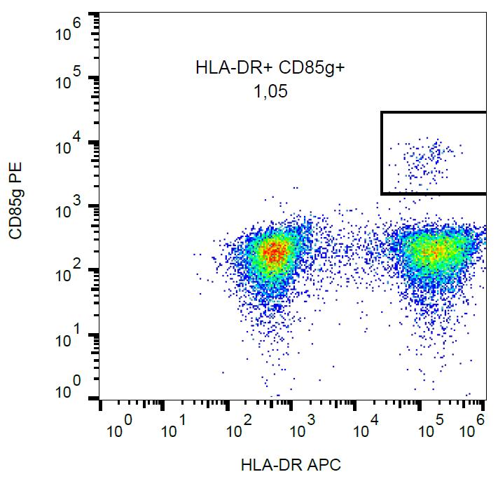 Figure 1: Surface staining of CD85g in human peripheral blood with anti-CD85g (17G10.2) PE.