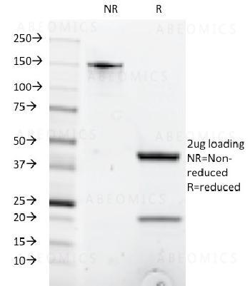 Fig. 1: SDS-PAGE Analysis Purified CD8A Mouse Monoclonal Antibody (C8/1035). Confirmation of Integrity and Purity of Antibody.