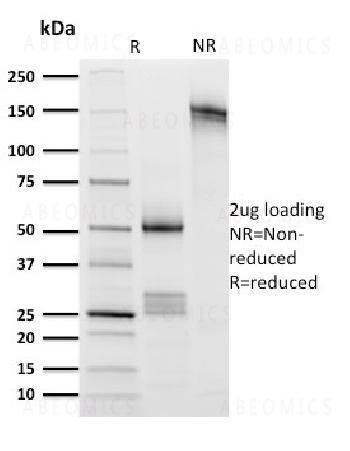 Fig. 1: SDS-PAGE Analysis Purified CD8 Mouse Monoclonal Antibody (UCHT4). Confirmation of Purity and Integrity of Antibody.