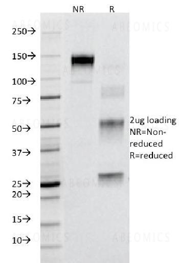 Fig. 1: SDS-PAGE Analysis Purified CD95 Mouse Monoclonal Antibody (B-R18). Confirmation of Purity and Integrity of Antibody.
