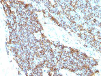 Fig. 1: Formalin-fixed, paraffin-embedded human Ewing's sarcoma stained with CD99 Monoclonal Antibody (12E7+MIC2/877).