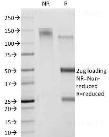 Fig. 1: SDS-PAGE Analysis Purified CDw78 Monoclonal Antibody (DF1588). Confirmation of Purity and Integrity of Antibody.