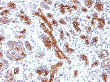 Fig.1: Formalin-fixed, paraffin-embedded human Pancreas stained with CFTR Monoclonal Antibody (CFTR/1341).