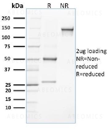 Fig. 1: SDS-PAGE Analysis Purified CLEC9A Mouse Monoclonal Antibody (8F9). Confirmation of Integrity and Purity of Antibody.