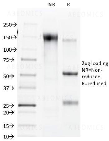 Fig. 1: SDS-PAGE Analysis Purified Connexin 32 Mouse Monoclonal Antibody (R5.21C). Confirmation of Purity and Integrity of Antibody.