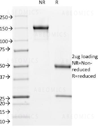 Fig. 1: SDS-PAGE Analysis Purified Cyclin B1 Mouse Monoclonal Antibody (V92.1). Confirmation of Integrity and Purity of Antibody.