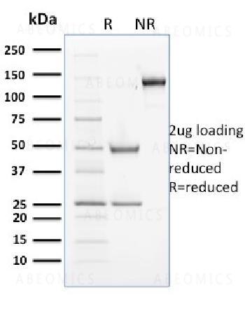 Fig. 1: SDS-PAGE Analysis Purified Cyclin B2 Mouse Monoclonal Antibody (X29.2). Confirmation of Purity and Integrity of Antibody.