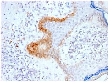 Figure 1: Formalin-fixed, paraffin-embedded human Skin stained with Cytokeratin 15 Rabbit Recombinant Monoclonal Ab (KRT15/2103R).