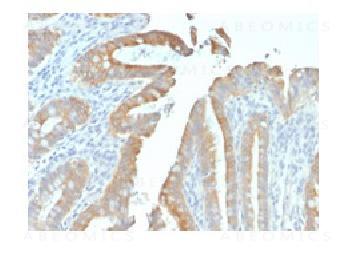 Figure 1: Formalin-fixed, paraffin-embedded Human Colon stained with Cytokeratin 19 Mouse Recombinant Monoclonal Antibody (rKRT19/799).