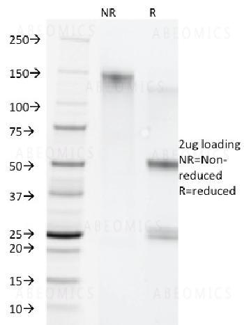 Fig. 1: SDS-PAGE Analysis Purified Cytokeratin 5/8 Monoclonal Antibody (C-50). Confirmation of Purity and Integrity of Antibody.