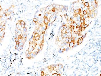 Fig. 1: Formalin-fixed, paraffin-embedded human Lung SCC stained with Cytokeratin 7/17 Mouse Monoclonal Antibody (C-46).