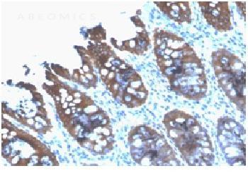 Figure 1: Formalin-fixed, paraffin-embedded human Colon stained with Cytokeratin 8 Mouse Recombinant Monoclonal Antibody (rB22.1).