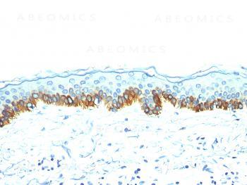 Fig. 1: Formalin-fixed, paraffin-embedded human Skin stained with Cytokeratin, LMW Mouse Monoclonal Antibody (AE-1).