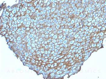 Fig. 1: Formalin-fixed, paraffin-embedded human Esophageal Carcinoma stained with Desmoglein-3 Mouse Monoclonal Antibody (DSG3/2838).