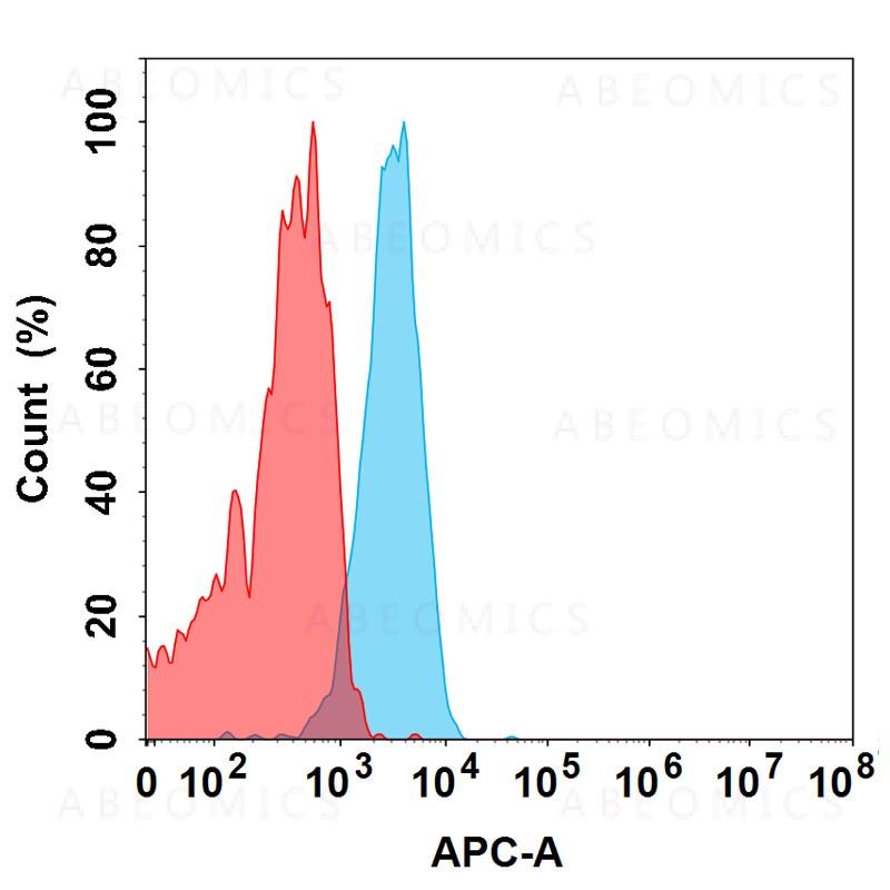 Figure 1. Flow cytometry analysis with 15µg/mL Anti-DLL3(tarlatamab without CD3 biosimilar) mAb on 293T-DLL3 cells (Blue histogram) or isotype control mAb on 293T-DLL3 cells (Red histogram).