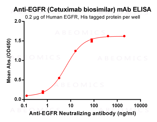 Figure-1: ELISA plate pre-coated by 2 μg/ml (100 μl/well) Human EGFR, His tagged protein can bind Anti-EGFR Neutralizing antibody in a linear range of 0.64-80 ng/ml.
