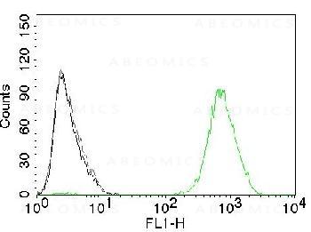 Fig. 1: Flow Cytometry of human EGFR on A431 cells. Black: cells alone; Grey: Isotype Control; Green: CF488-labeled EGFR Monoclonal Antibody (GFR450).
