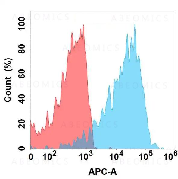 Figure 1. Flow cytometry analysis with Anti-ENPP3 (DMC720) mAb on Expi293 cells transfected with human ENPP3 (Blue histogram) or Expi293 transfected with irrelevant protein (Red histogram).