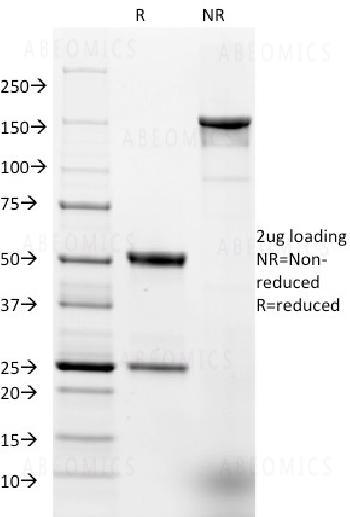 Fig. 1: SDS-PAGE Analysis Purified EpCAM Mouse Monoclonal Antibody (EGP40/1384). Confirmation of Integrity and Purity of Antibody.