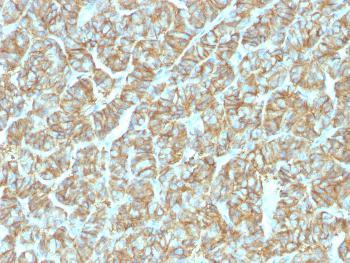 Fig. 1: Formalin-fixed, paraffin-embedded human Thyroid Carcinoma stained with EpCAM Rabbit Recombinant Monoclonal Antibody (EGP40/1555R).
