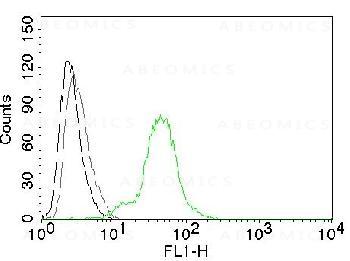 Fig. 1: Flow Cytometry of human ER beta on BT474 cells. Black: cells alone; Grey: Isotype Control; Green: CF488-labeled ER beta Monoclonal Antibody (Erb455).