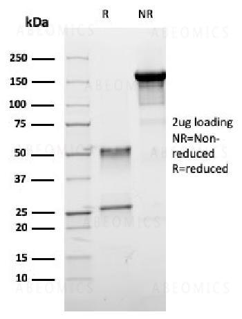 Fig. 1: SDS-PAGE Analysis Purified ER-beta Mouse Monoclonal Antibody (ESR2/3005). Confirmation of Purity and Integrity of Antibody.