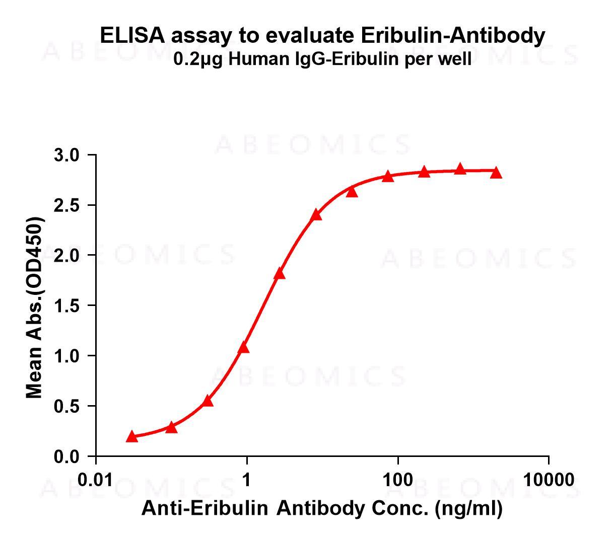 Figure 1. Elisa plates were pre-coated with IgG-Eribulin (0.2μg/per well). Serial diluted anti-Eribulin monoclonal antibody (12-9652) solutions were added, washed, and incubated with secondary antibody before Elisa reading. From above data, the EC50 for anti-Eribulin monoclonal antibody binding with IgG-Eribulin is 1.658ng/ml.
