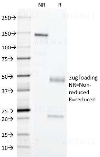 Fig. 1: SDS-PAGE Analysis Purified Erythrocyte Specific Mouse Monoclonal Antibody (SFL23.6). Confirmation of Purity and Integrity of Antibody.
