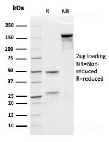 Fig. 1: SDS-PAGE Analysis Purified EPO Recombinant Mouse Monoclonal Antibody (rEPO/1367). Confirmation of Purity and Integrity of Antibody.
