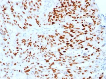 Fig. 1: Formalin-fixed, paraffin-embedded human Endometrial Carcinoma stained with Estrogen Receptor alpha Mouse Monoclonal Antibody (ESR1/1904).