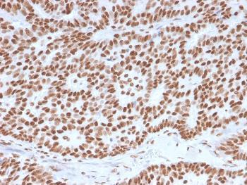 Fig. 1: Formalin-fixed, paraffin-embedded human Breast Carcinoma stained with Estrogen Receptor alpha Mouse Monoclonal Antibody (ESR1/3557).