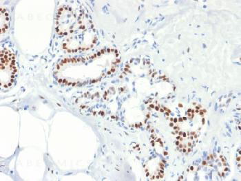 Figure 1: Formalin-fixed, paraffin-embedded human Breast Carcinoma stained with Estrogen Receptor, alpha Mouse Recombinant Monoclonal Antibody (rESR1/1935).