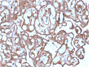 Fig. 1: Formalin-fixed, paraffin-embedded human Placenta stained with Ezrin Mouse Monoclonal Antibody (SPM244).
