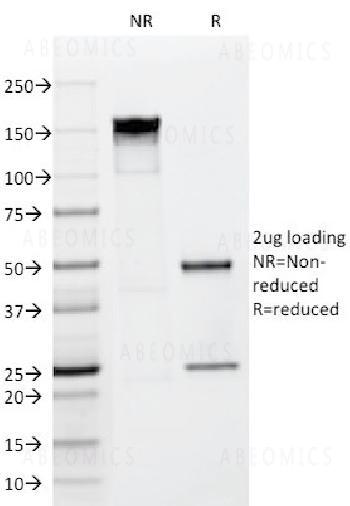 Fig. 1: SDS-PAGE Analysis Purified FGF23 Mouse Monoclonal antibody (FGF23/638). Confirmation of Purity and Integrity of Antibody.