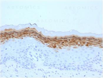 Fig. 1: Formalin-fixed, paraffin-embedded human Skin stained with Filaggrin Mouse Monoclonal Antibody (FLG/1561).