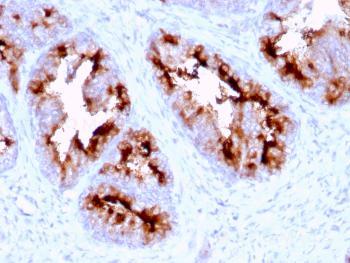 Fig. 1: Formalin-fixed, paraffin-embedded human Prostate Carcinoma stained with FOLH1 (PSMA) Mouse Monoclonal Antibody (FOLH1/2363).