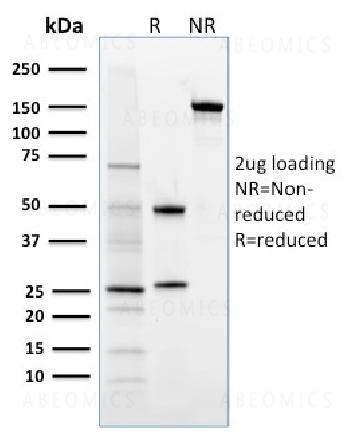 Fig. 1: SDS-PAGE Analysis Purified FOXP3 Mouse Monoclonal Antibody (3G3). Confirmation of Purity and Integrity of Antibody.