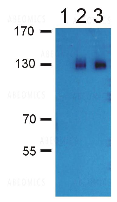 Figure 1: Western blotting analysis of GABA B receptor GB2 subunit in rat liver (1), GB2-transfected HEK292 cells (2) and rat brain (3)