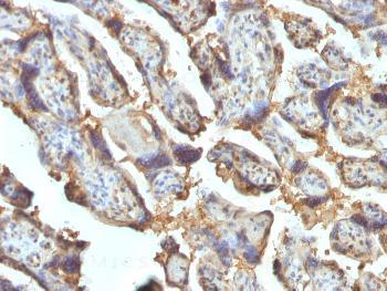 Fig. 1: Formalin-fixed, paraffin-embedded human Placenta stained with Galectin-13 / PP13 Monoclonal Antibody (PP13/1162).