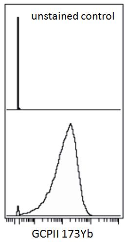 Figure 1: Surface staining (mass cytometry) of LNCaP cell line using anti-GCPII (GCP-05) 173Yb. Gated on singlets.