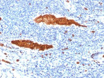Fig. 1: Formalin-fixed, paraffin-embedded human Tonsil stained with Glycophorin A Mouse Monoclonal Antibody (JC159).