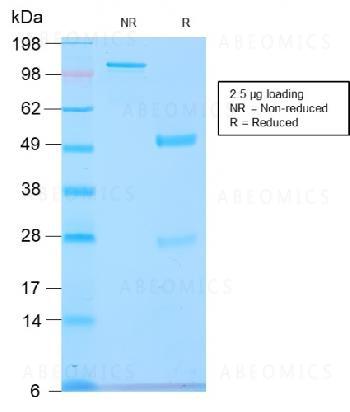 Fig. 1: SDS-PAGE Analysis Purified GnRH-R Rabbit Recombinant Monoclonal Antibody (GNRHR/2982R). Confirmation of Purity and Integrity of Antibody.