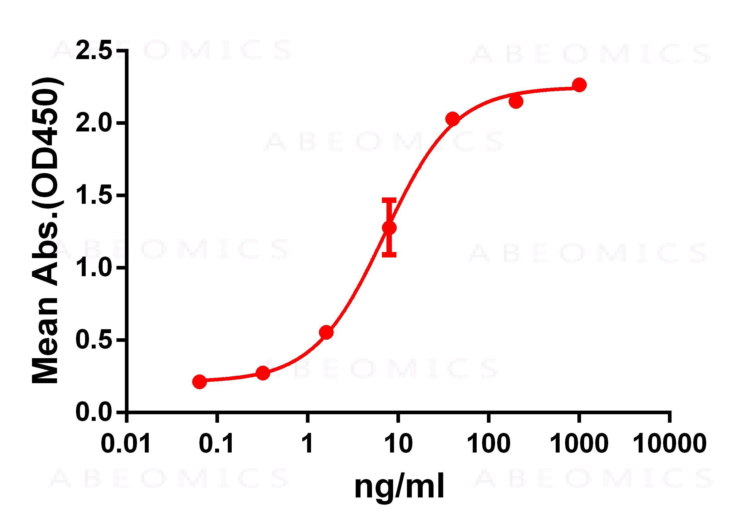 Figure 1. ELISA plate pre-coated by 2 µg/ml (100 µl/well) Human GPRC5D protein, hFc-His tagged protein can bind Rabbit anti-GPRC5D monoclonal antibody (clone: DM60) in a linear range of 1-100 ng/ml.