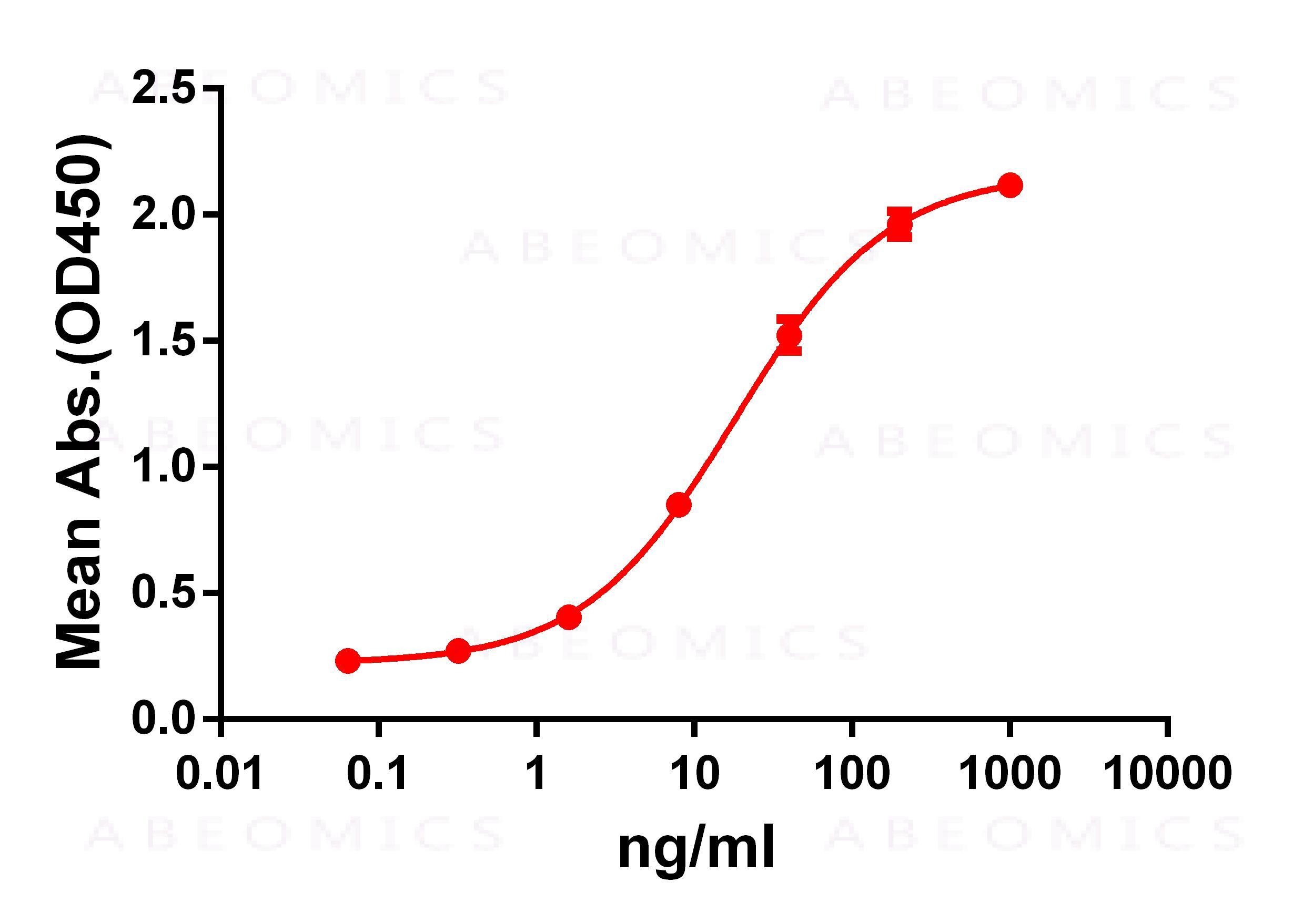Figure 1. ELISA plate pre-coated by 2 µg/ml (100 µl/well) Human GPRC5D protein, hFc-His tagged protein can bind Rabbit anti-GPRC5D monoclonal antibody (clone: DM62) in a linear range of 1-100 ng/ml.