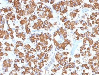 Fig. 1: Formalin-fixed, paraffin-embedded human Pituitary stained with Growth Hormone Mouse Monoclonal Antibody (GH/1450).