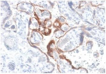Figure 1: Formalin-fixed, paraffin-embedded Human placenta stained with hCG beta RabbitRecombianntMonoclonal Antibody (HCGb/1985R).