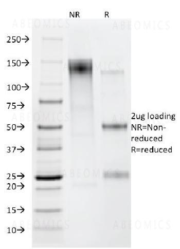 Fig. 1: SDS-PAGE Analysis Purified Helicobacter pylori Mouse Monoclonal Antibody (HP/212). Confirmation of Purity and Integrity of Antibody.