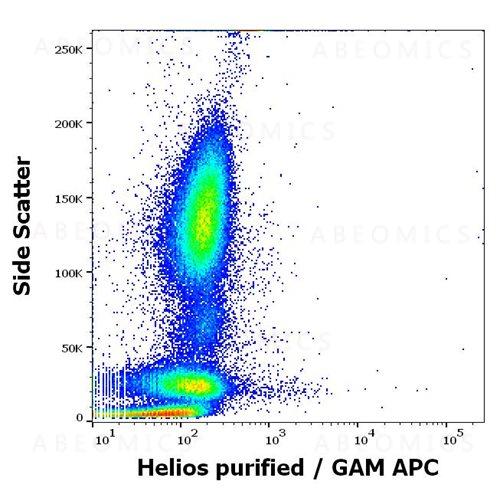 Figure 1: Flow cytometry intracellular staining pattern of human peripheral whole blood stained using anti-Helios (22F6) purified antibody (concentration in sample 8 μg/ml, GAM APC).